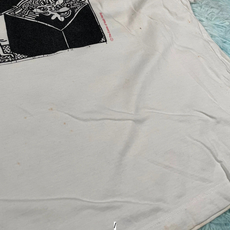 Vintage 00s White Keith Haring Graphic T Shirt - Small