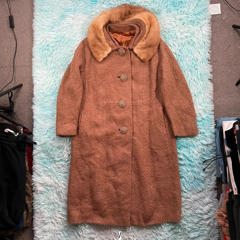 Vintage 1960s Brown Fur Trimmed Longcoat Bettijean