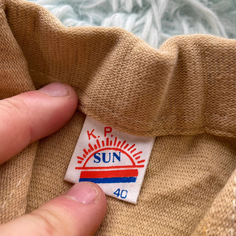 Vintage 1970s Brown Polo Shirt Goa Print - Medium, brand: NO LABEL, condition: Very good, size: M