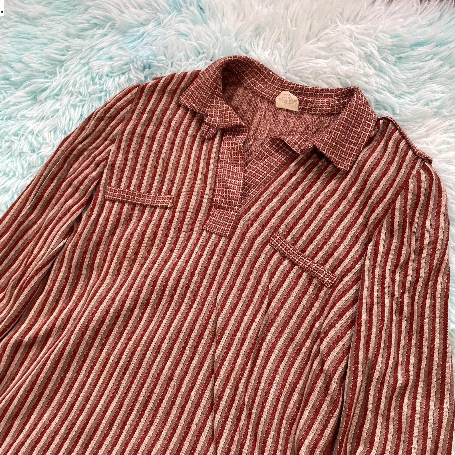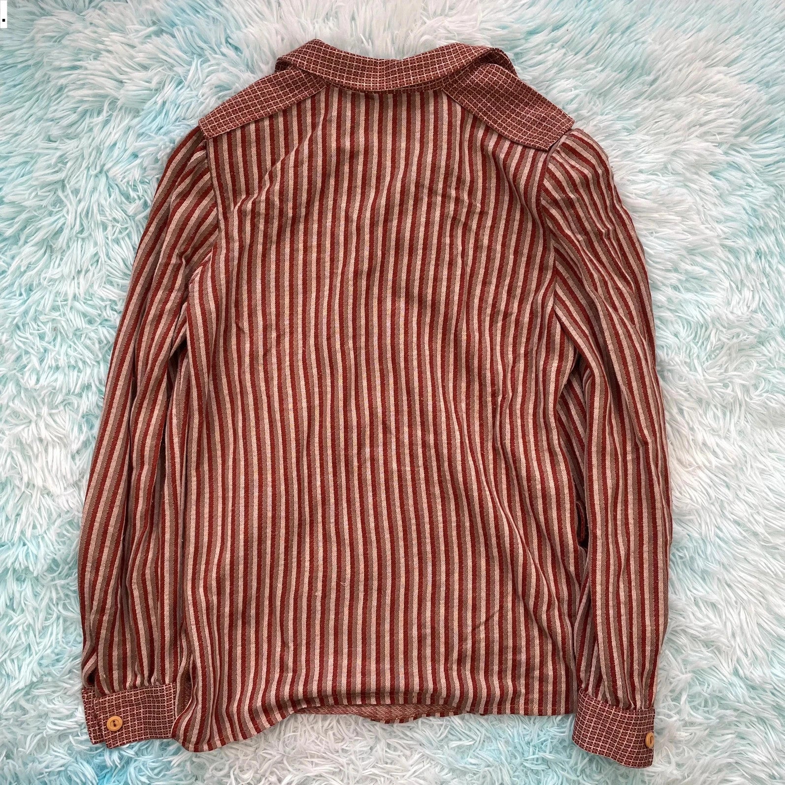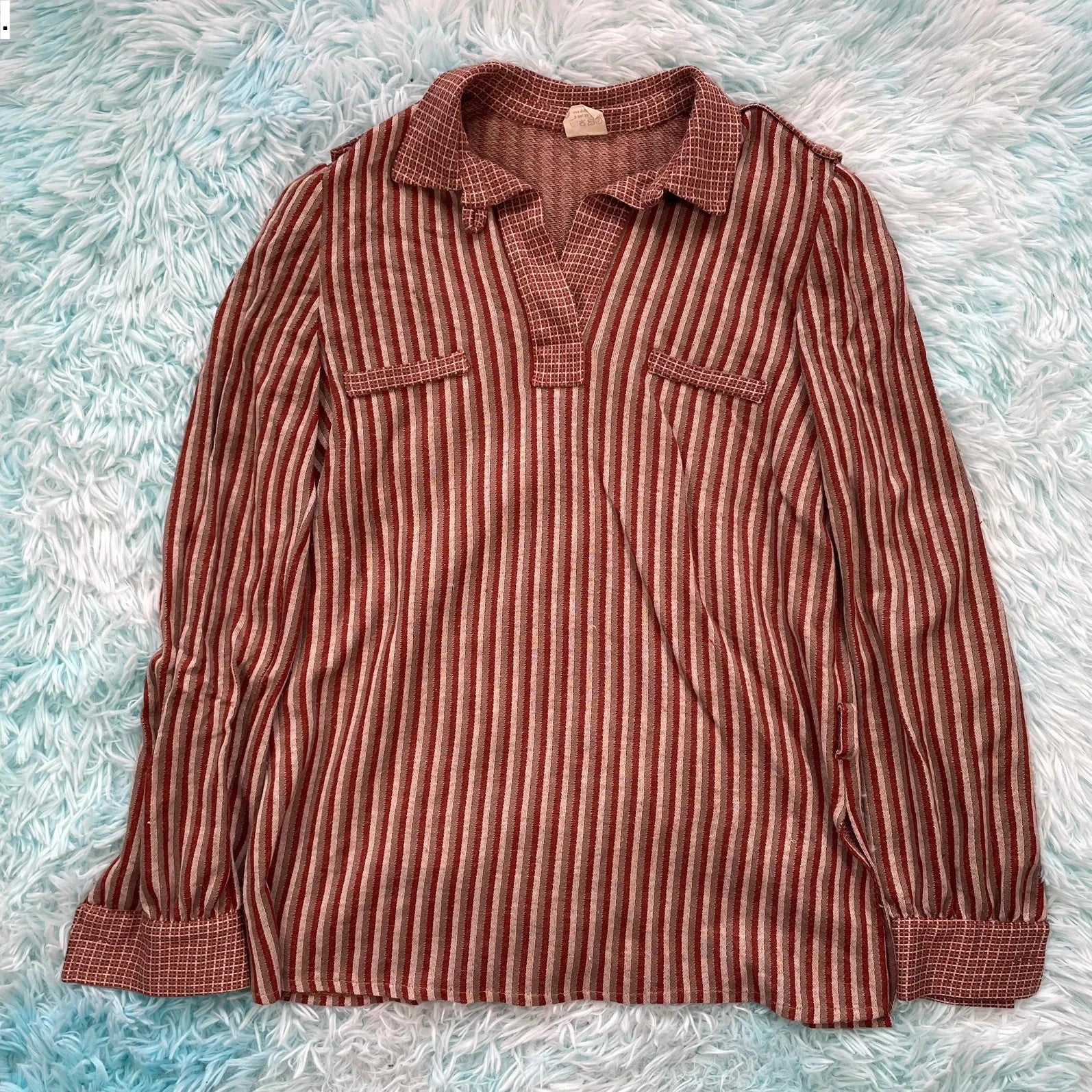 Vintage 1970s Brown Striped Polo Top Shirt - Medium