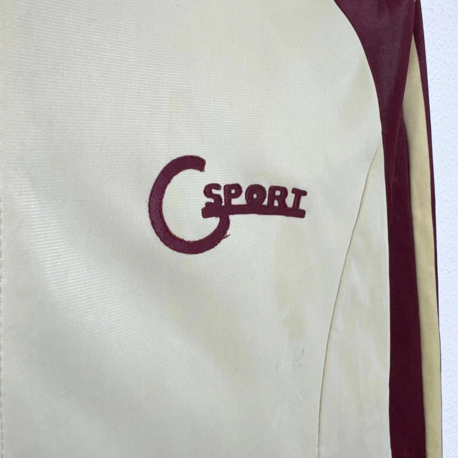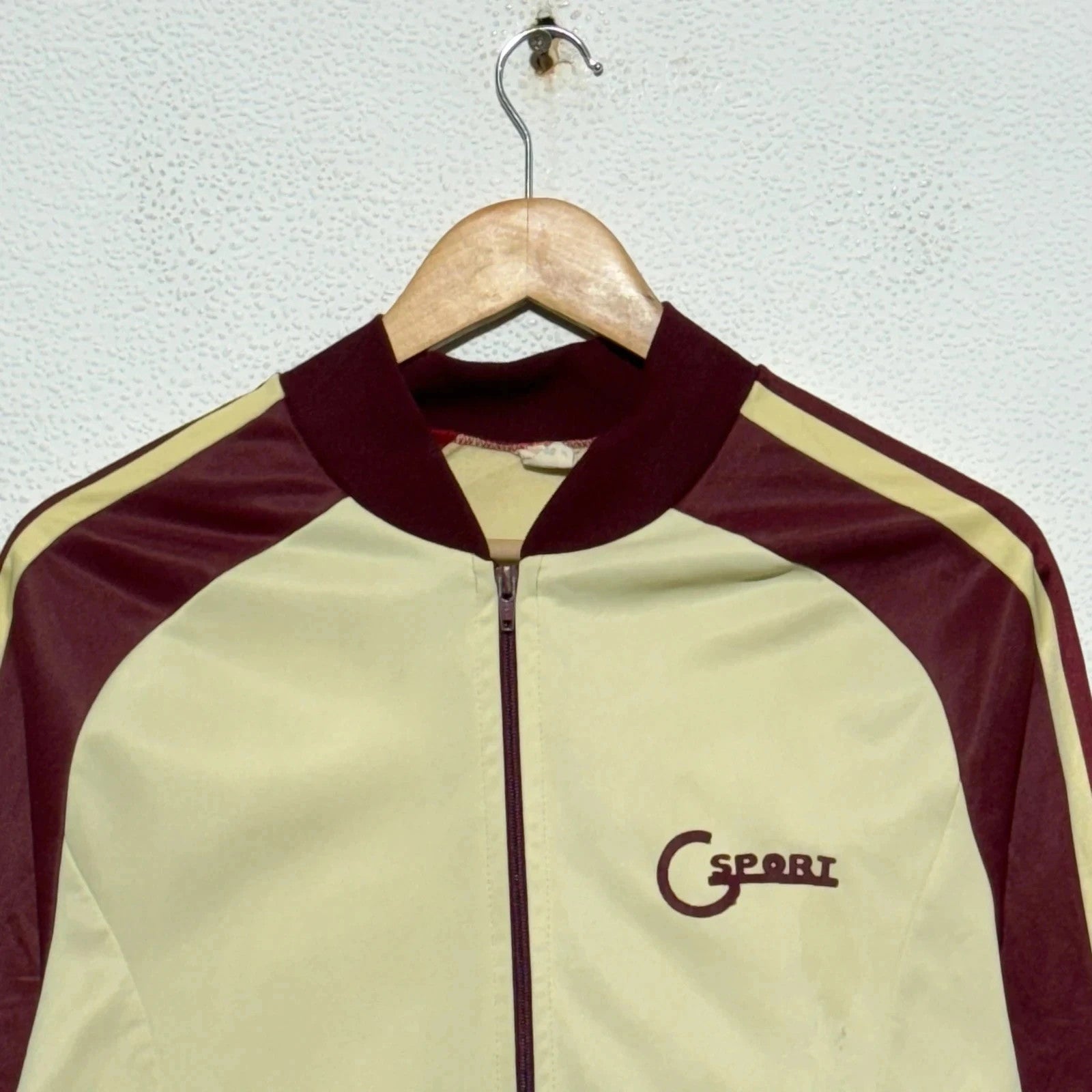 Vintage 70s Cream & Burgundy Track Jacket CSport - Small