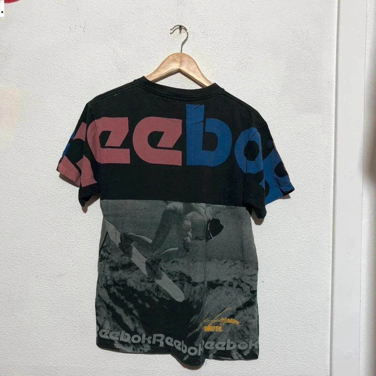 Vintage 80s Black Reebok Surfing All Over Print T Shirt - Medium
