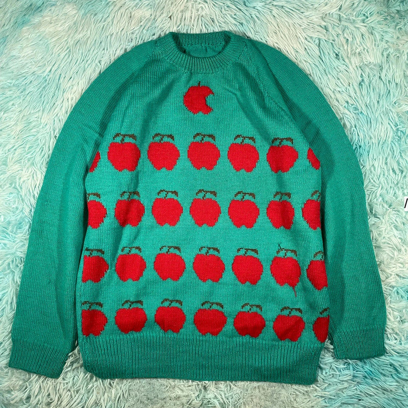 Vintage 80s Green Apple Patterned Knitted Jumper - Medium