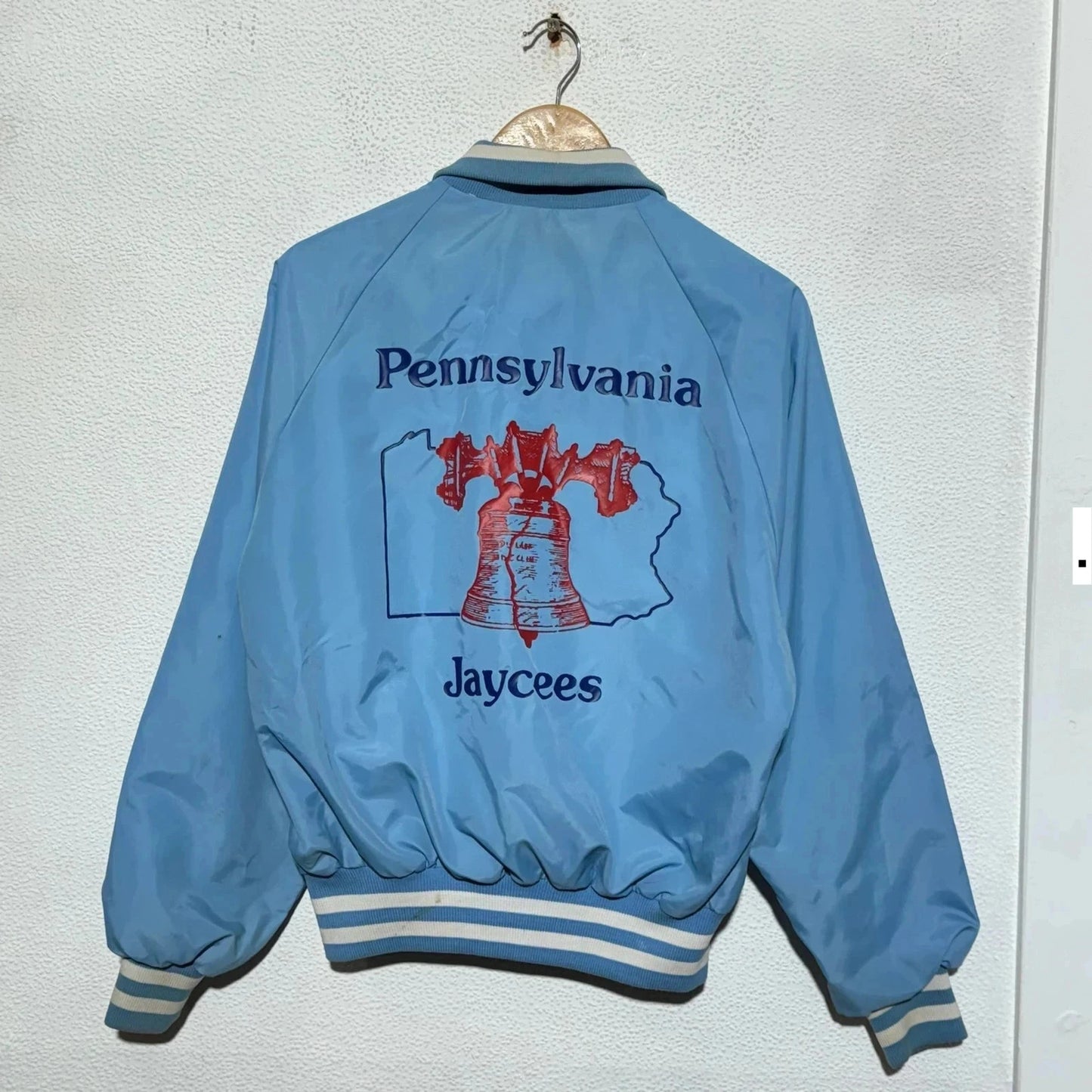 Vintage 80s Light Blue Varsity Jacket - Medium