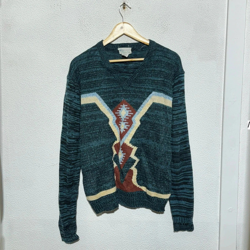 Vintage 80s Navy Aztec patterned Knitted Jumper - Large