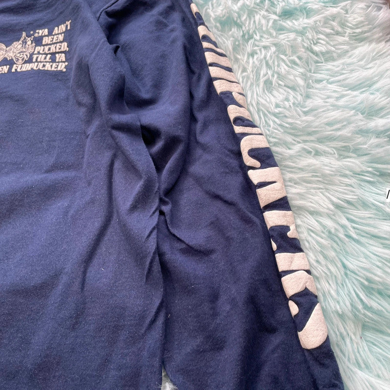 Vintage 80s Navy Fudpuckers Bar & Grill Graphic T Shirt - Large, brand: Fruit of the Loom, condition: Very good, size: L