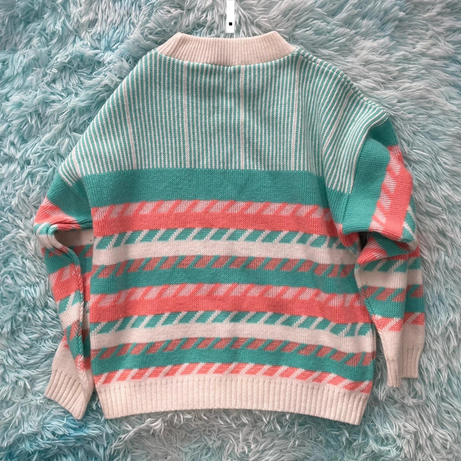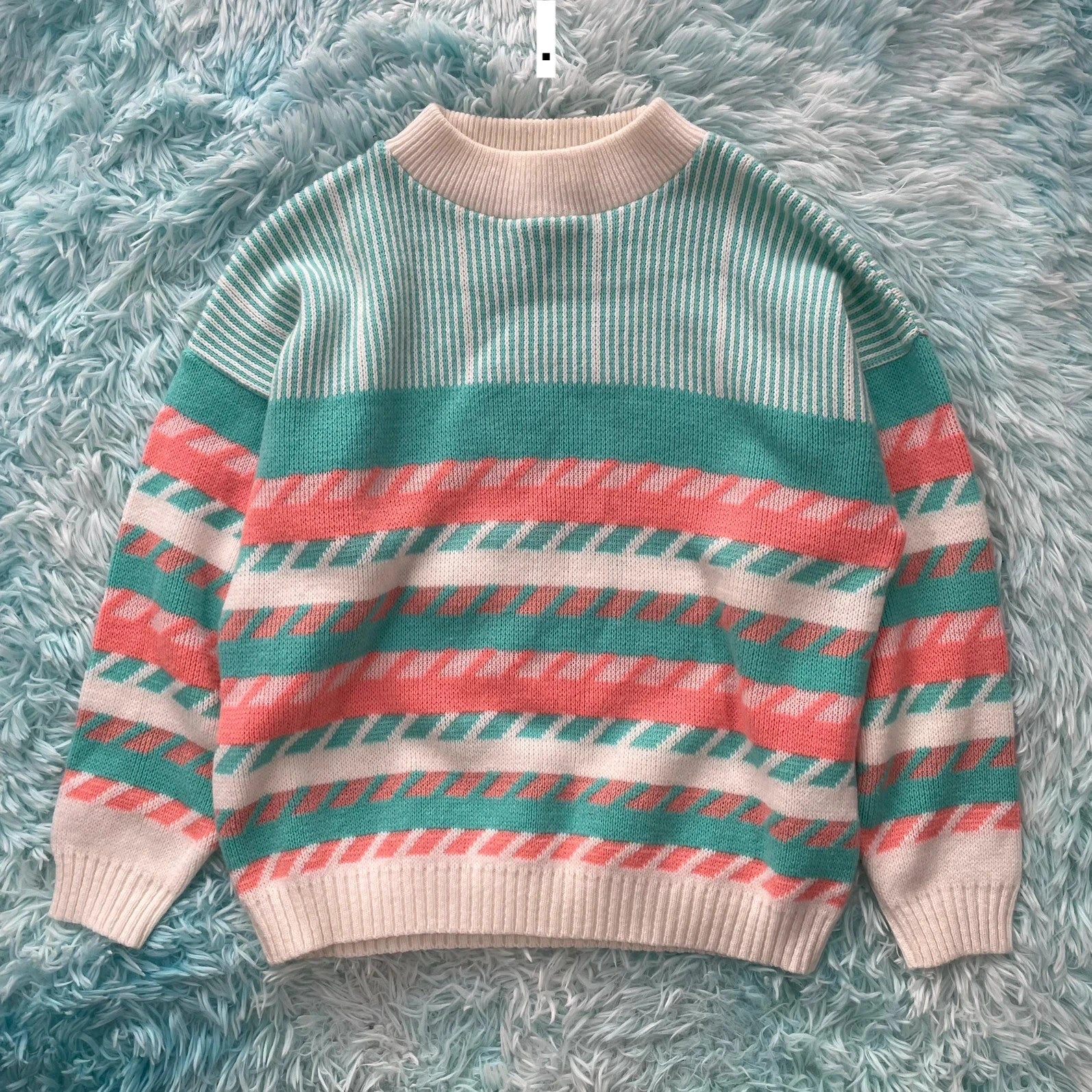 Vintage 80s Pastel Striped Knitted Jumper - Small
