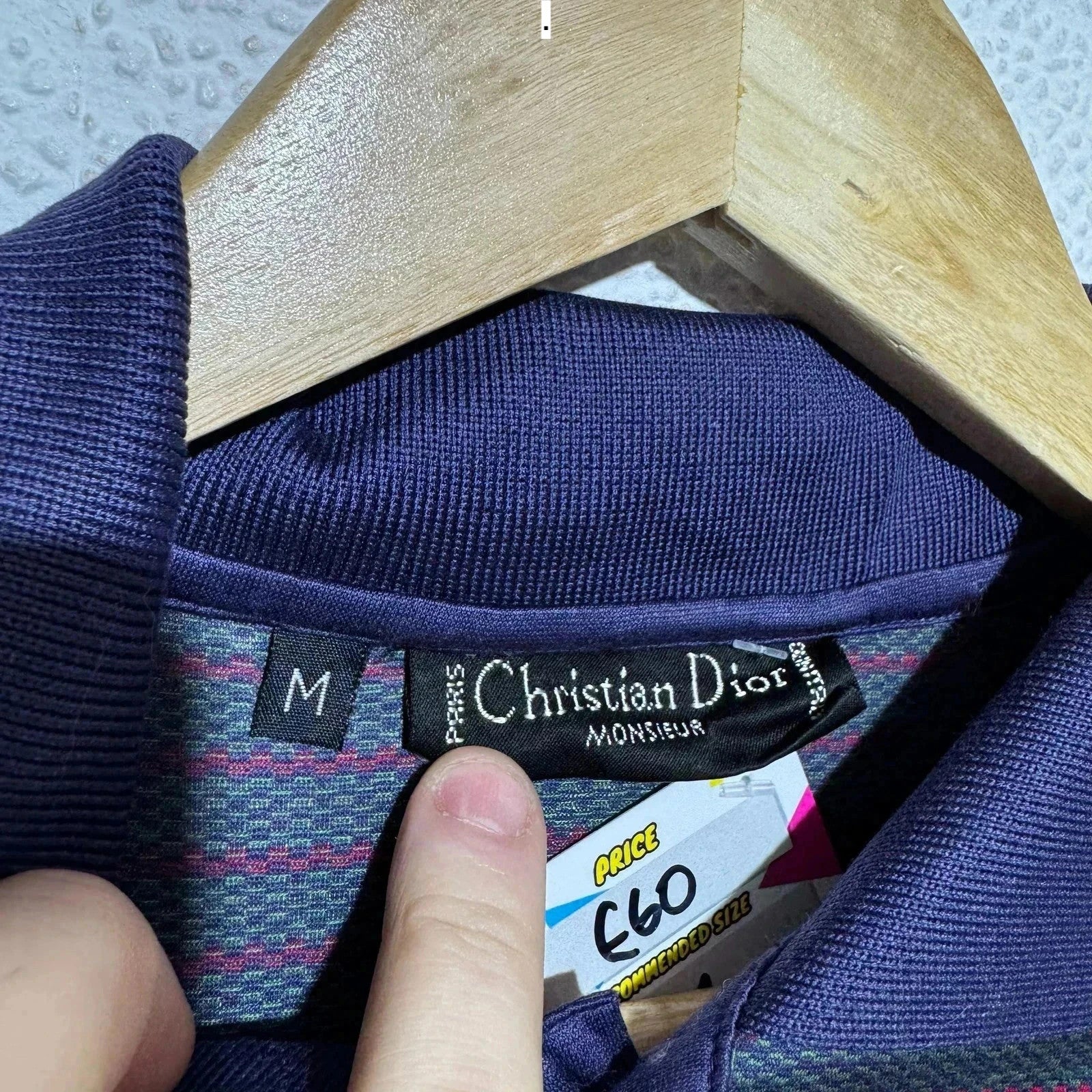 Vintage 80s Patterned Christian Dior Polo Shirt - Medium