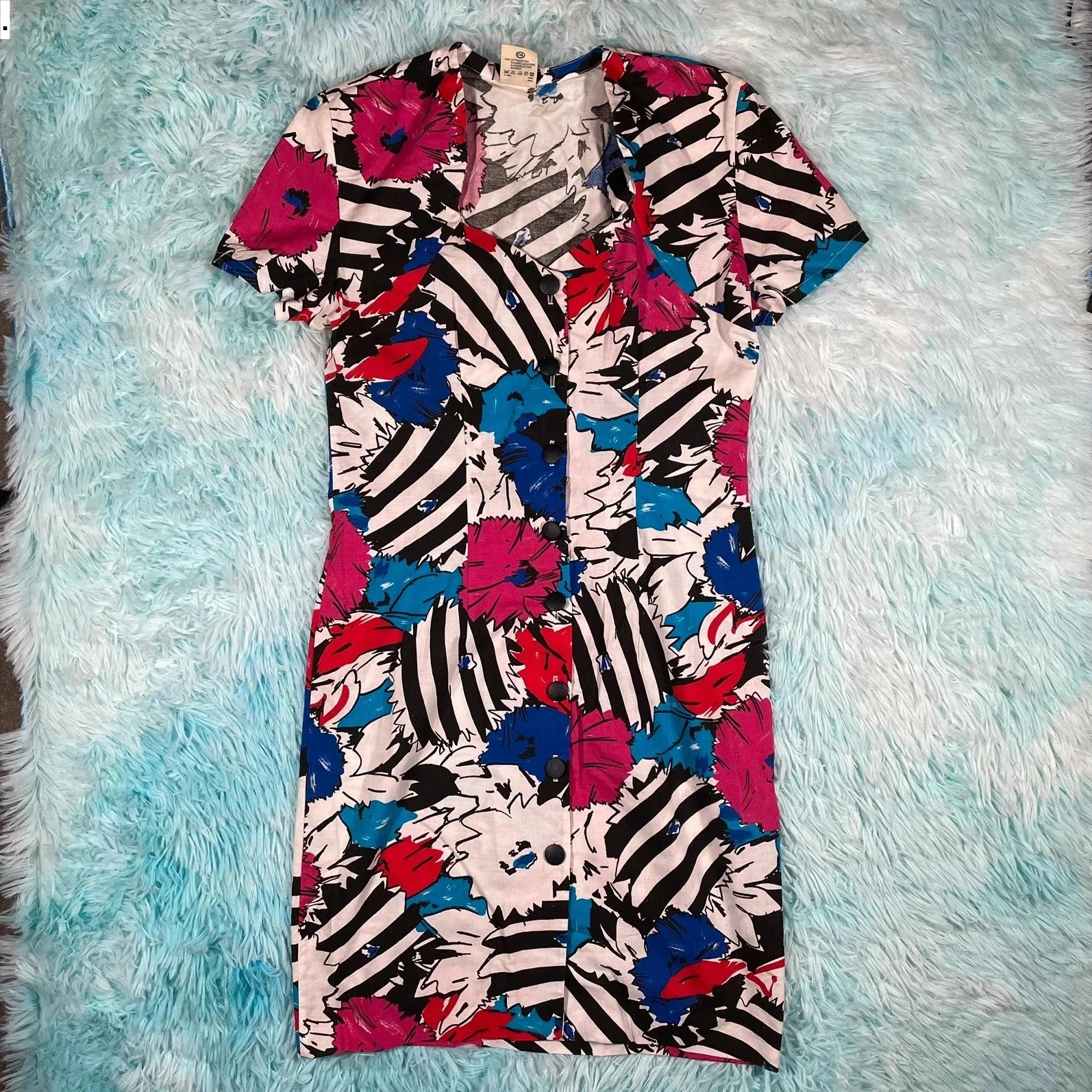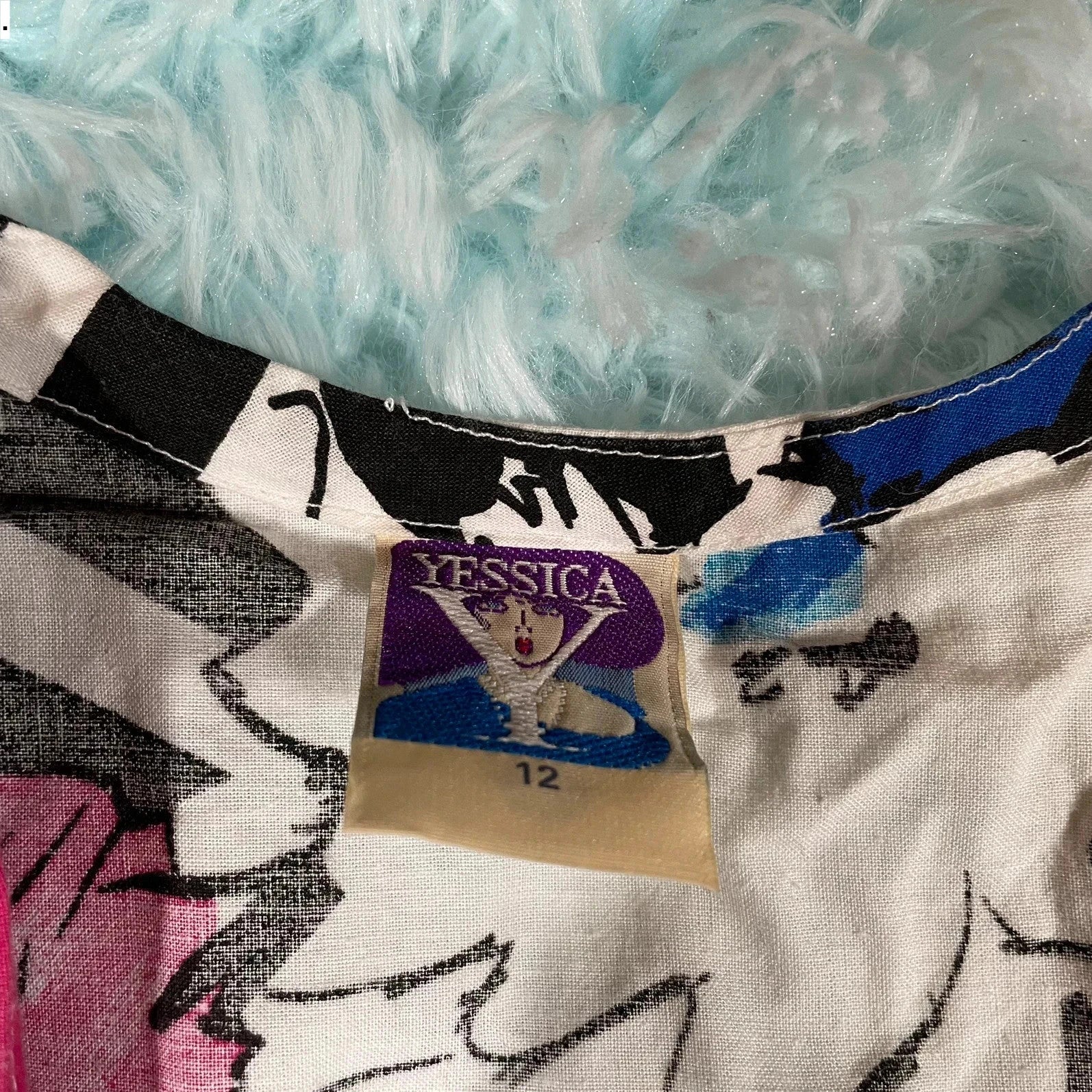 Vintage 80s Pink Patterned Dress Yessica - Size 12