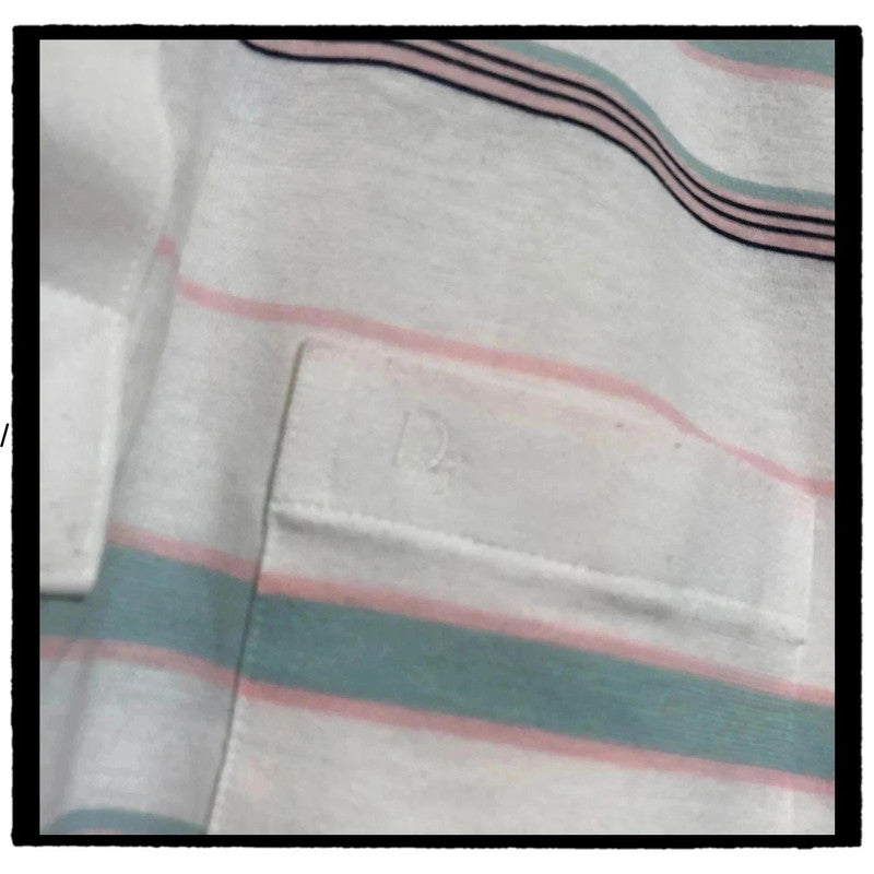 Vintage 80s White & Blue Striped Christian Dior Polo Shirt - Medium