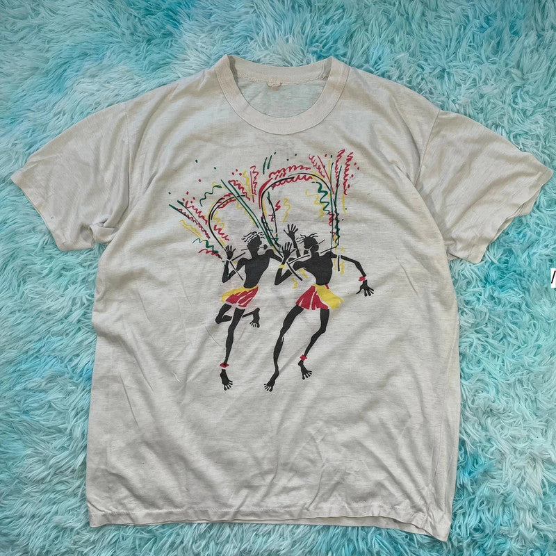 Vintage 80s White Carnival Graphic T Shirt - Medium