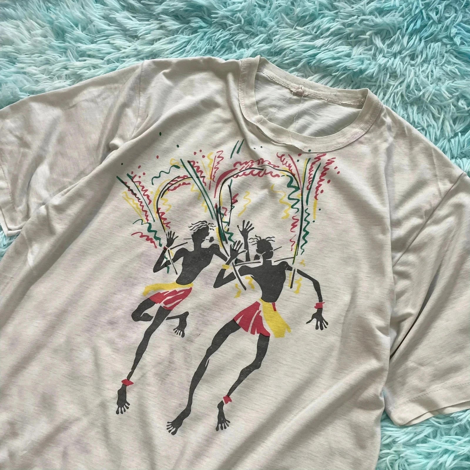 Vintage 80s White Carnival Graphic T Shirt - Medium