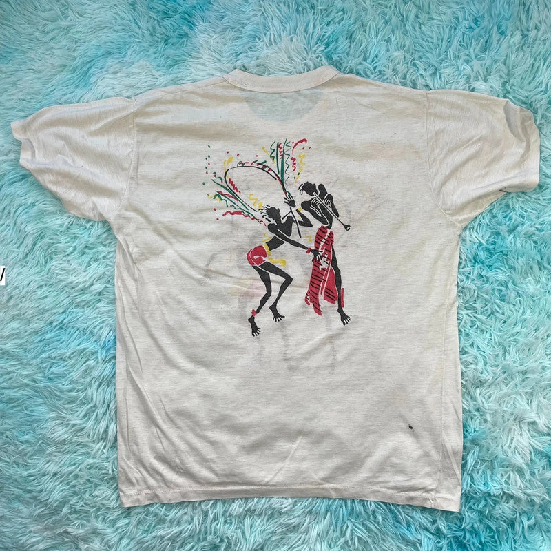 Vintage 80s White Carnival Graphic T Shirt - Medium