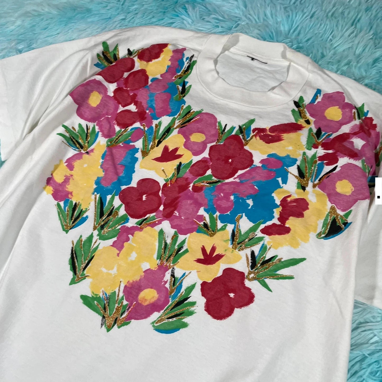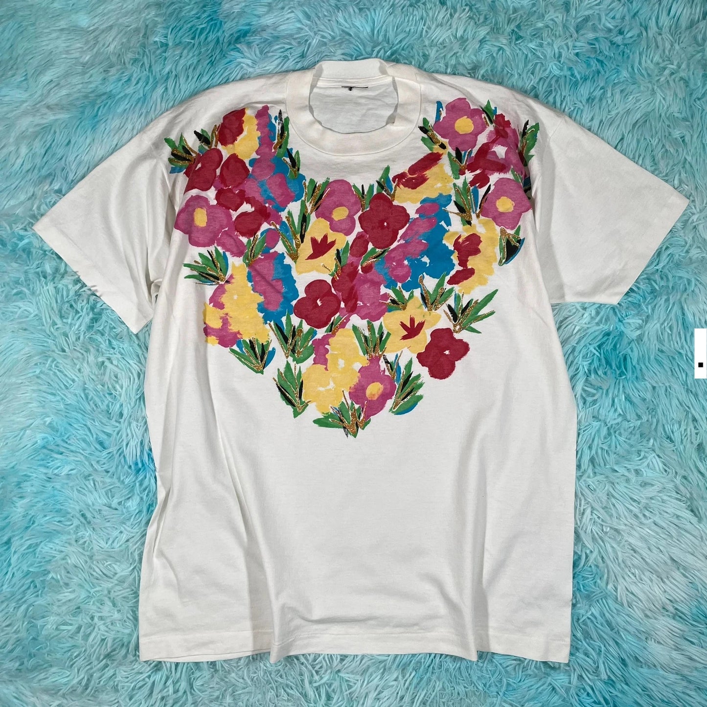Vintage 80s White Floral Print T Shirt - Large