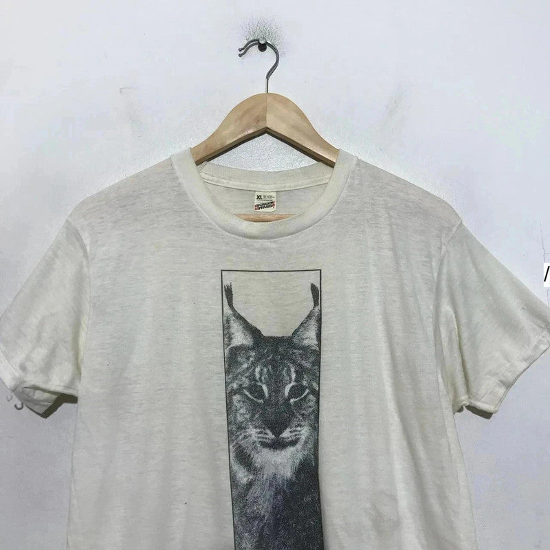Vintage 80s White Lynx Nature Graphic Print Screen Stars - XL, brand: Screen Stars, condition: Very good, size: XL