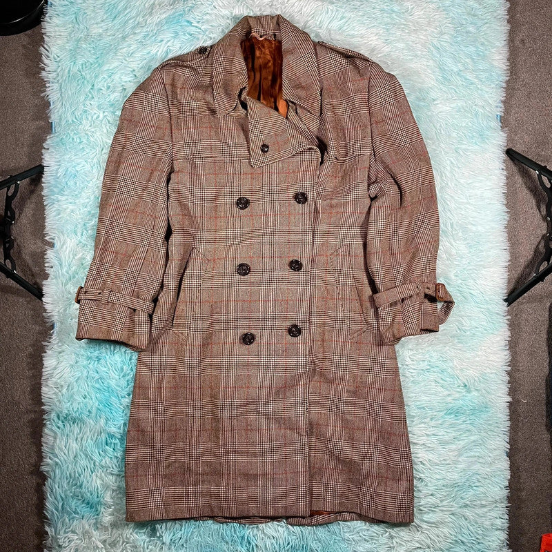 Vintage 90s Austin Reed Chequered Wool Trench Coat - XL, brand: Austin Reed, condition: Very good, size: XL