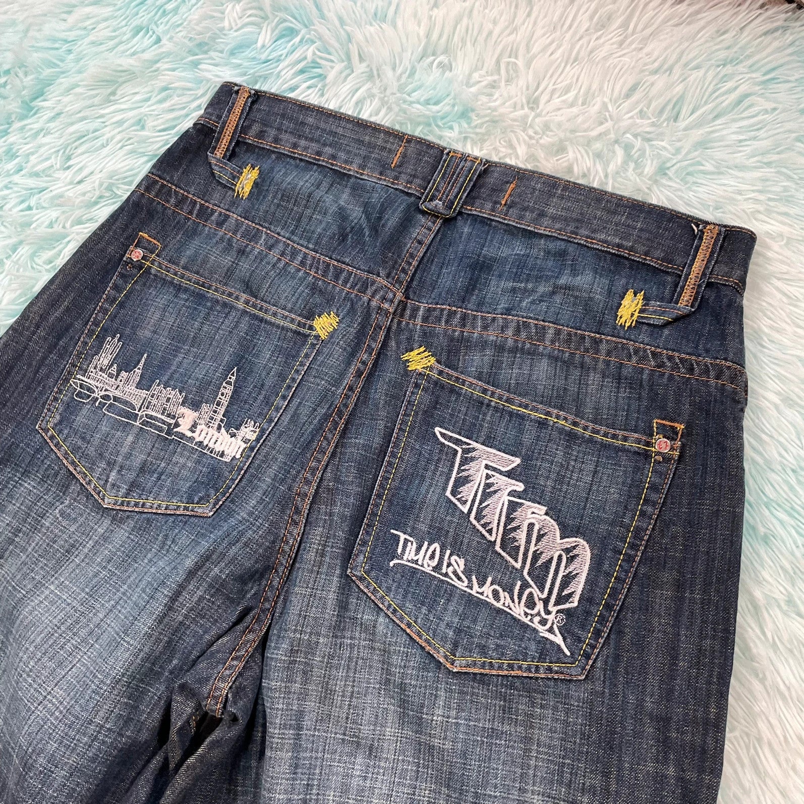 Vintage 90s Baggy Jean Shorts Jorts Time is Money - 36W
