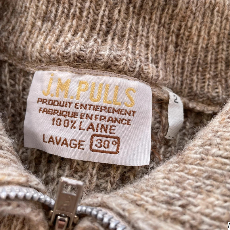 Vintage 90s Beige Heavyweight Wool Jumper Full Zip - Medium, brand: JM pulls, condition: Very good, size: M