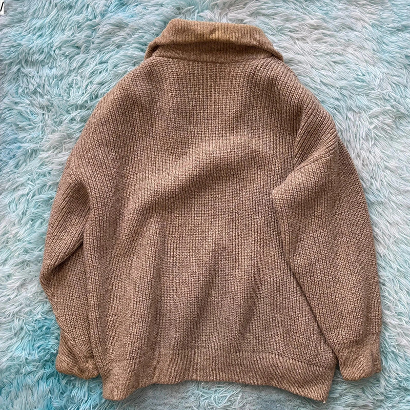 Vintage 90s Beige Wool Knitted Jumper Full Zip France - Large, brand: JM pulls, condition: Very good, size: L