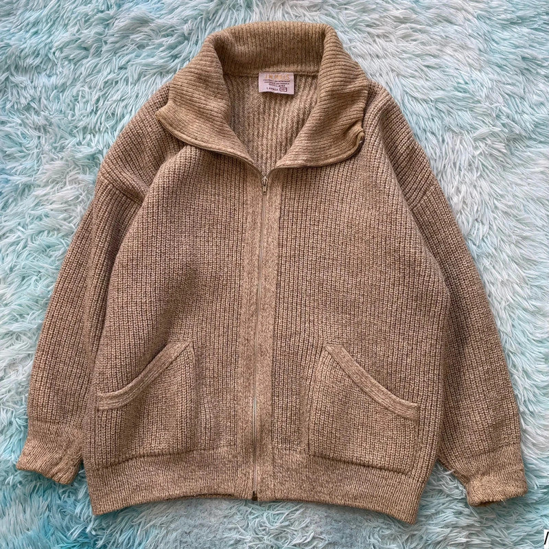 Vintage 90s Beige Wool Knitted Jumper Full Zip France - Large, brand: JM pulls, condition: Very good, size: L
