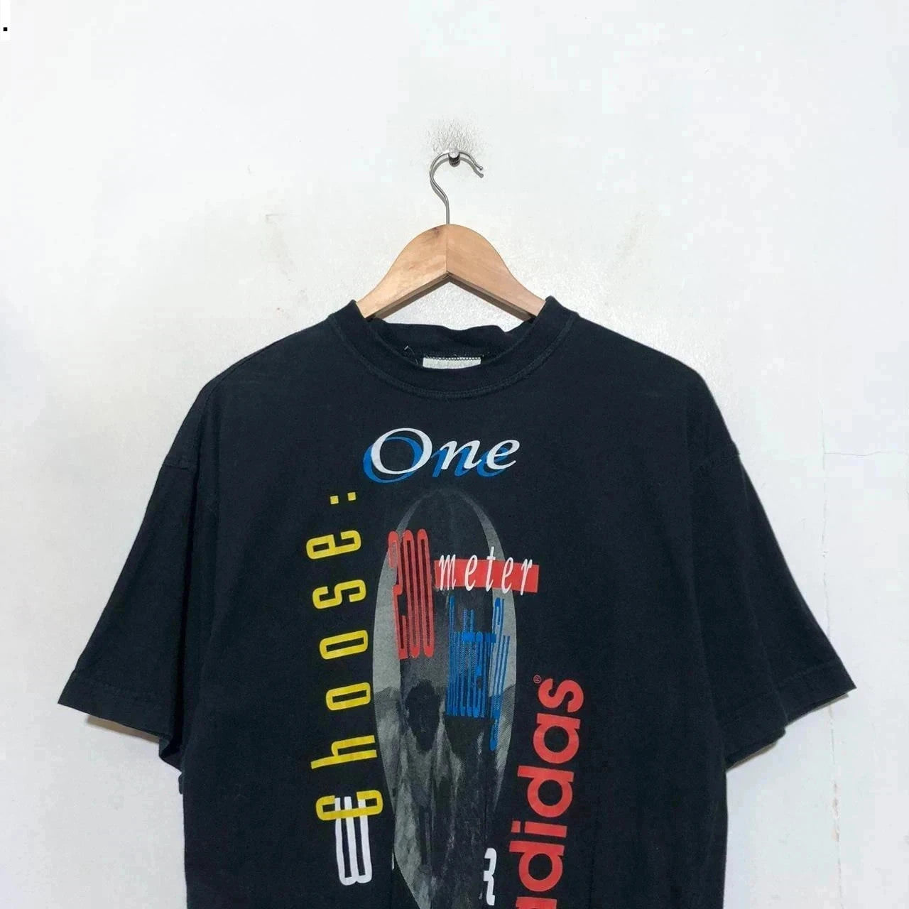 Vintage 90s Black Adidas Swimming Graphic T Shirt 200m Butterfly - Medium
