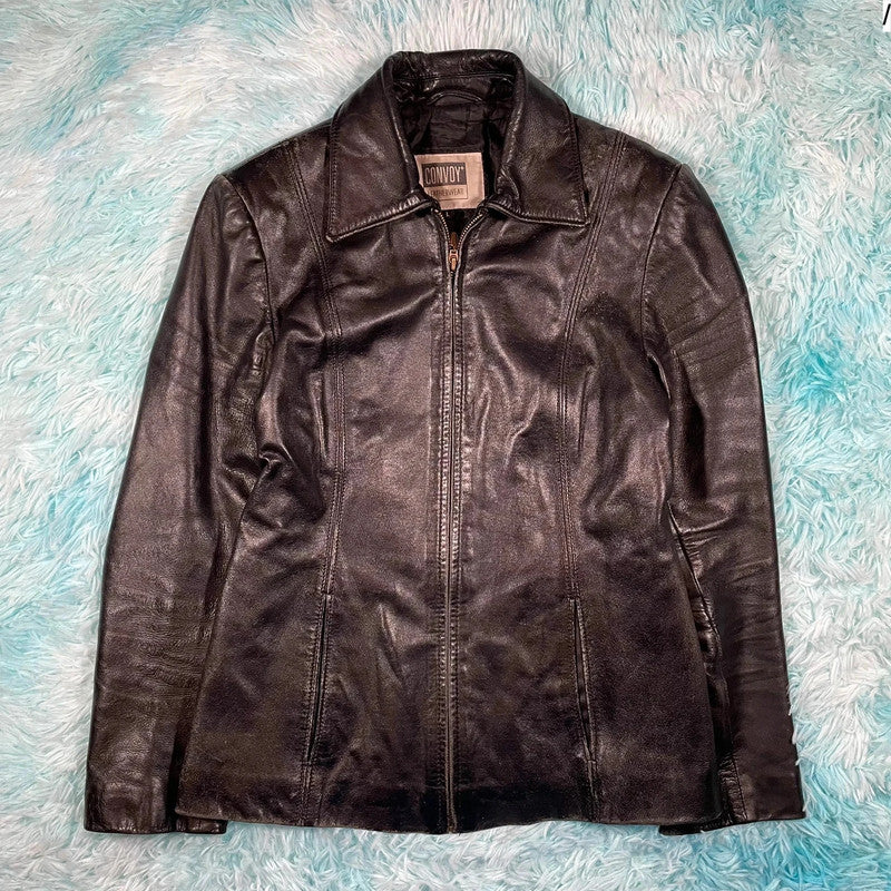Vintage 90s Black Boxy Leather Jacket - Large, brand: NO LABEL, condition: Very good, size: L