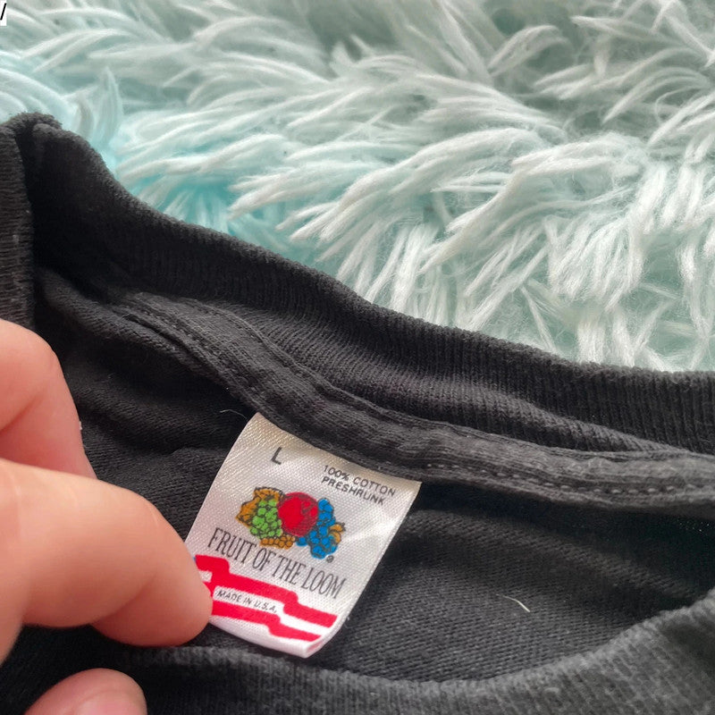 Vintage 90s Black Comedy Bar Graphic T shirt - Large, brand: Fruit of the Loom, condition: Very good, size: L