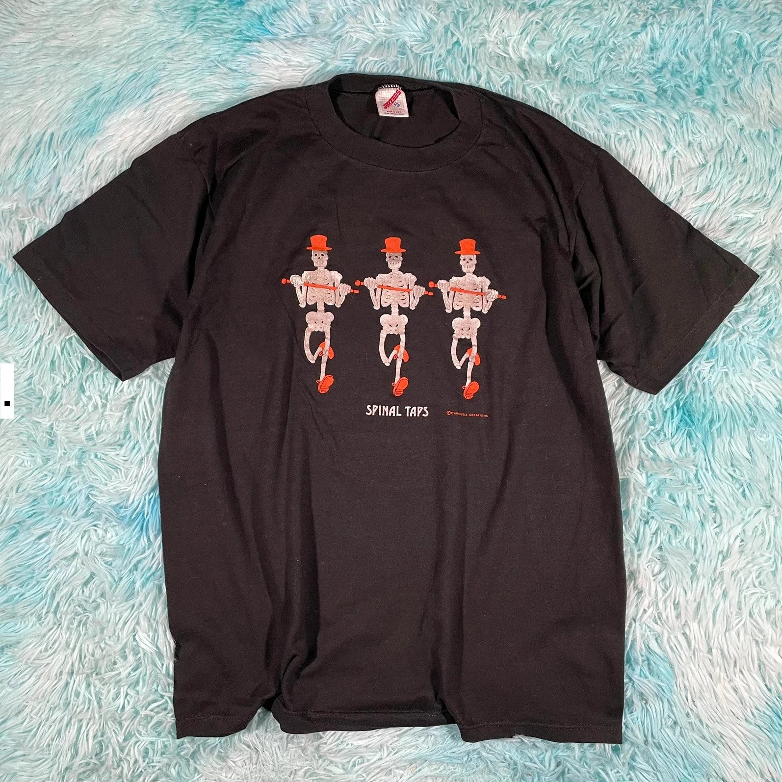 Vintage 90s Black Dancing Skeleton Graphic T shirt - XL