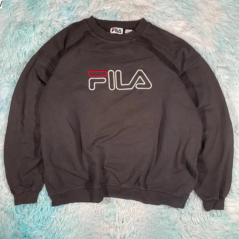 Vintage 90s Black Fila Sweatshirt Embroidered Spellout - XXL, brand: FILA, condition: Very good, size: XXL