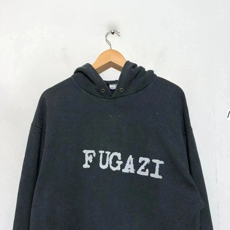 Vintage 90s Black Fugazi Band Hoodie Screen Stars - XL