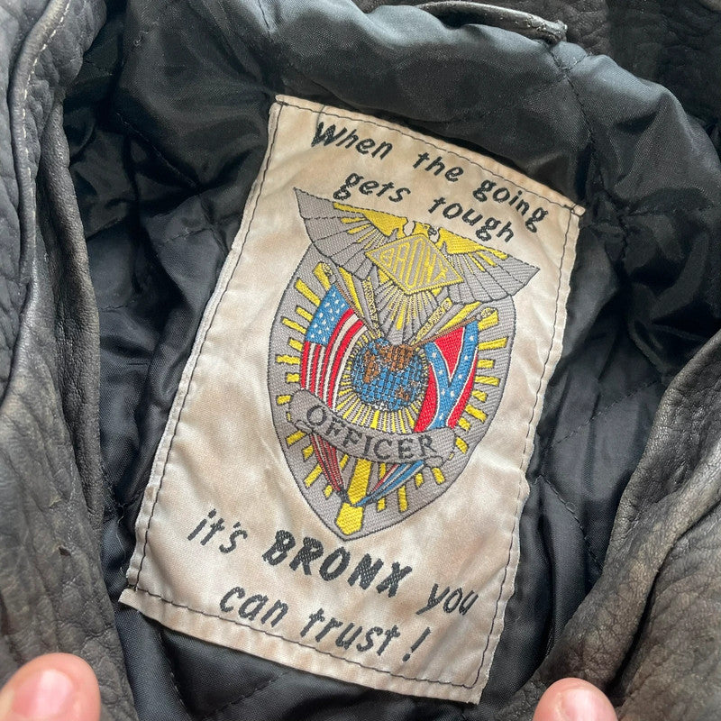 Vintage 90s Black Heavy Leather Jacket Bronx - Medium