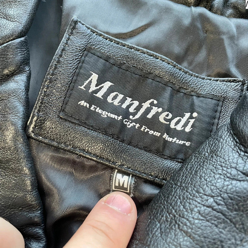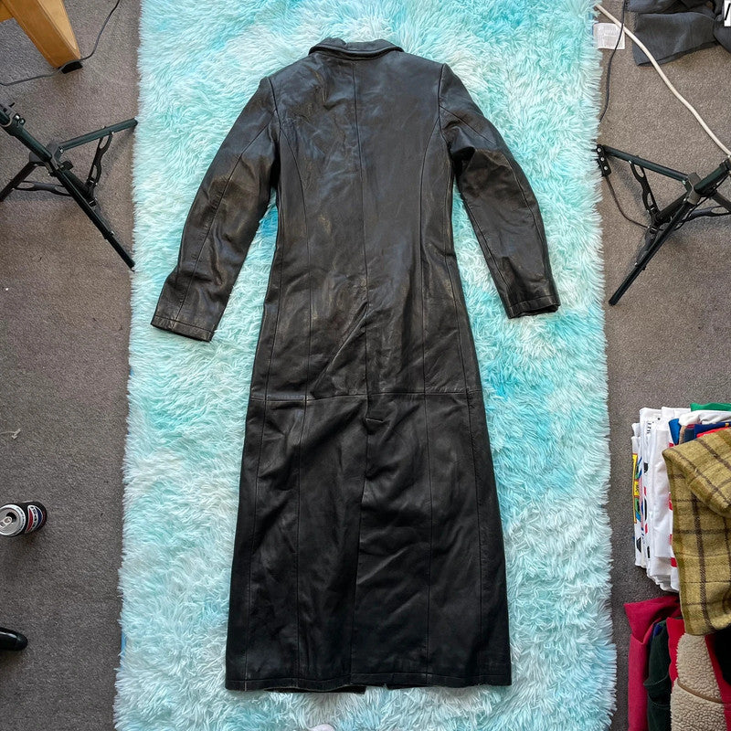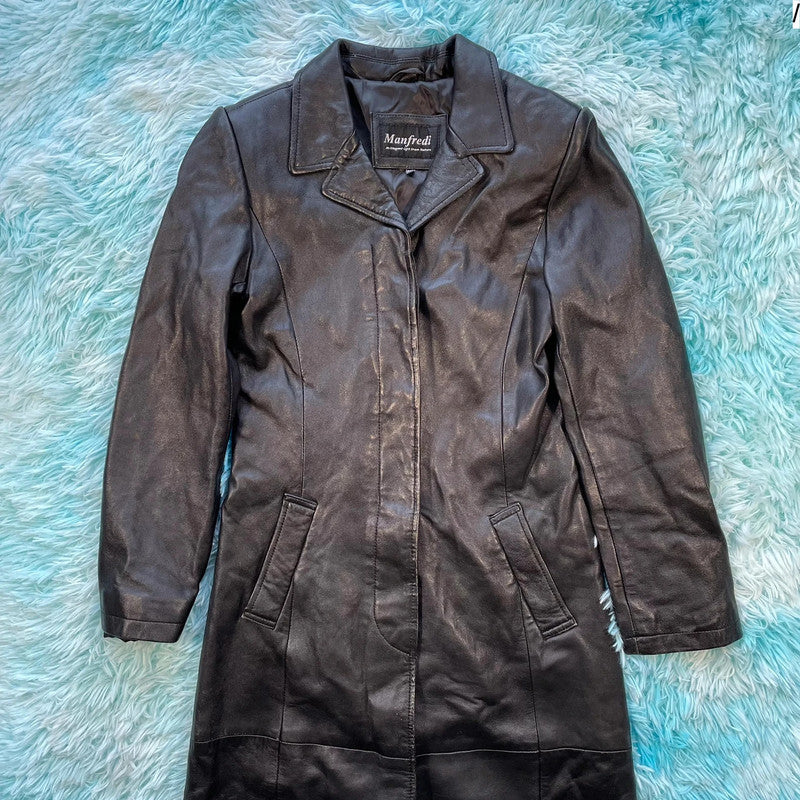 Vintage 90s Black Leather Duster Trench Coat - Medium, brand: Manfredi, condition: Very good, size: 6 / S