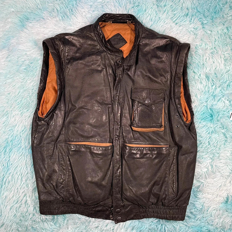 Vintage 90s Black Leather Vest Jacket - Large, brand: NO LABEL, condition: Very good, size: L