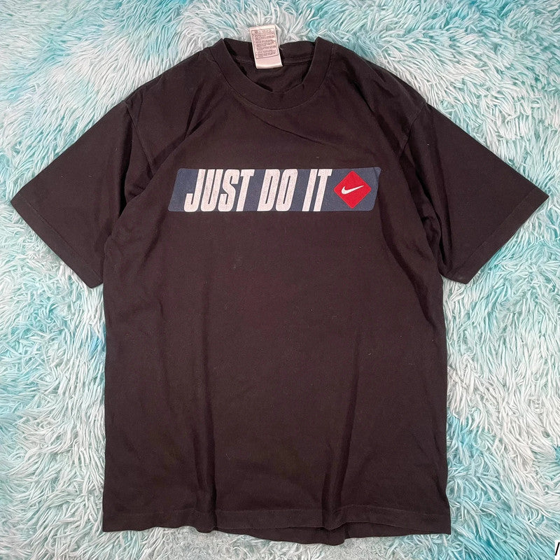 Vintage 90s Black Nike T Shirt Graphic Just Do it - Medium, brand: Nike, condition: Very good, size: M