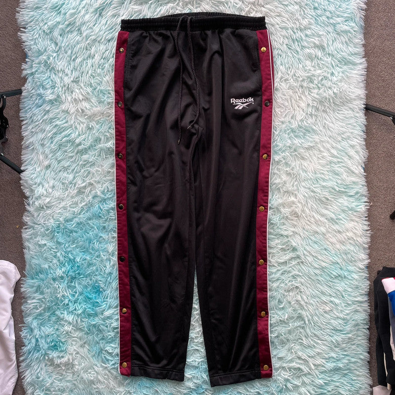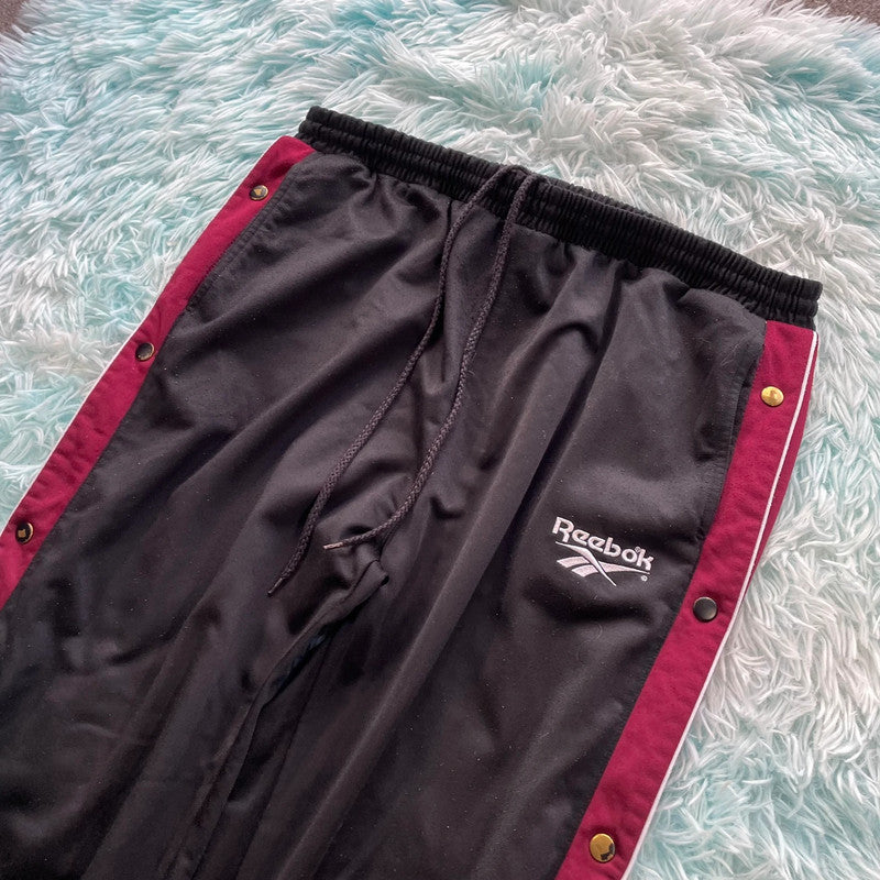 Vintage 90s Black Reebok Tracksuit Bottoms Poppers - XL, brand: Reebok, condition: Very good, size: XL