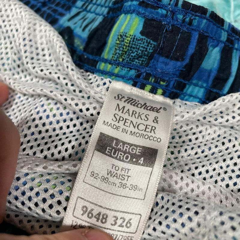 Vintage 90s Blue Funky Pattern Swim Shorts - Large, brand: St Michael, condition: Very good, size: L