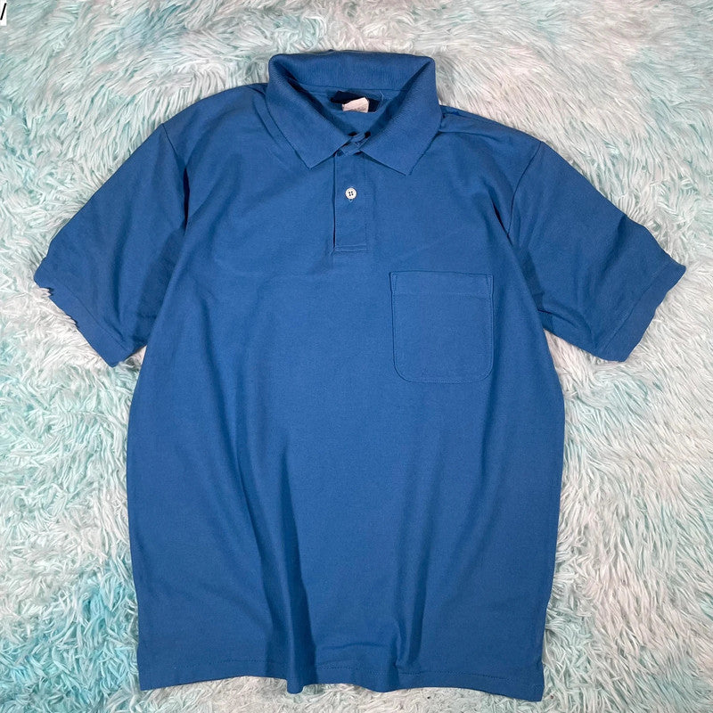 Vintage 90s Blue Plain Polo Shirt - Medium