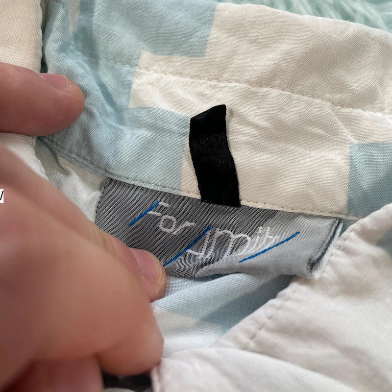 Vintage 90s Blue & White Dogtooth Funky Silk Shirt - XL