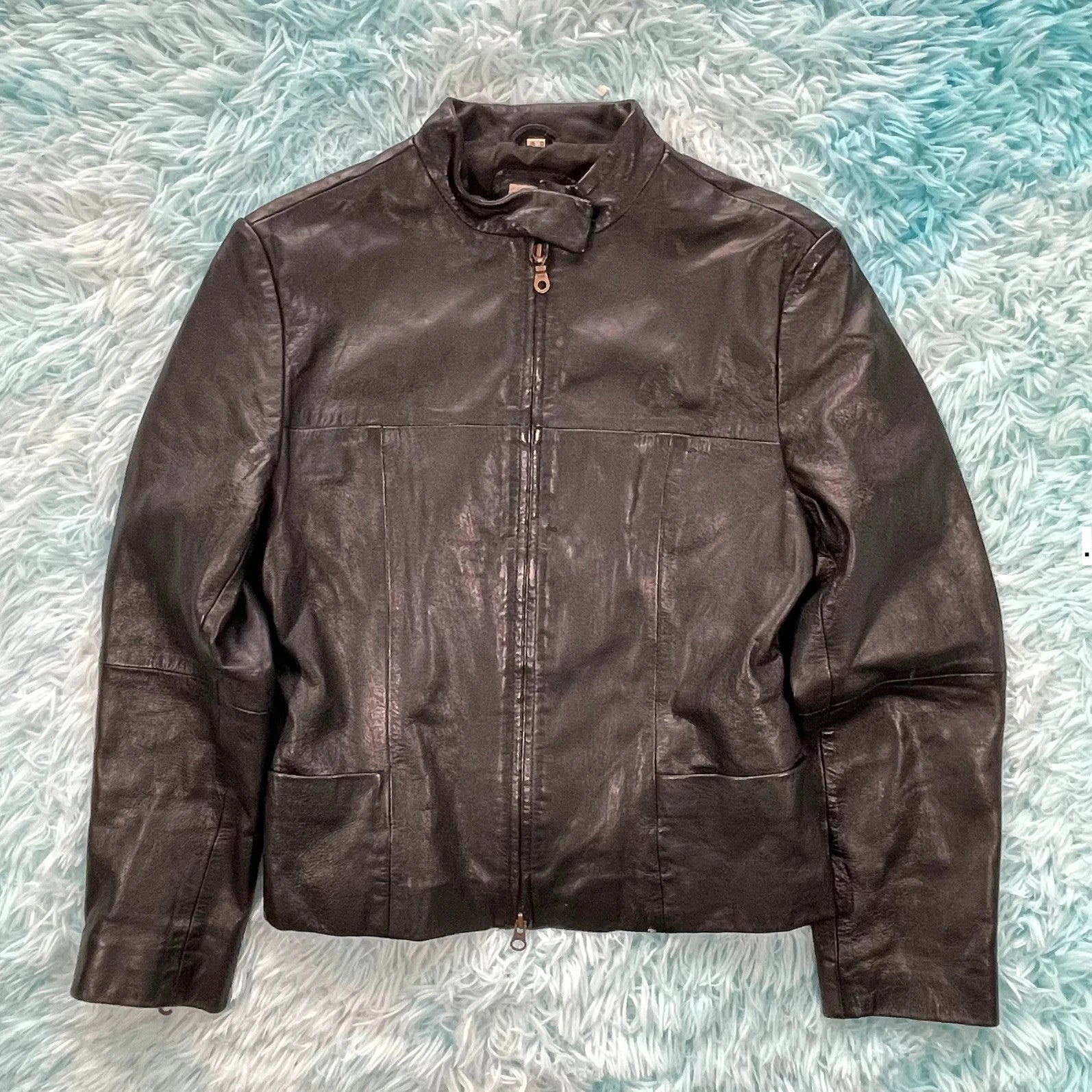 Vintage 90s Boxy Leather Jacket - Size 12