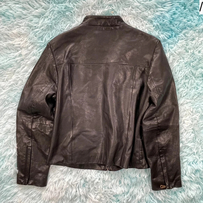 Vintage 90s Boxy Leather Jacket - Size 12