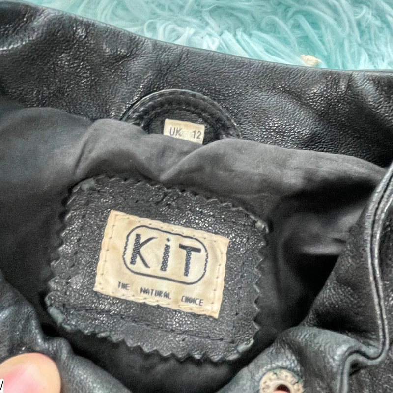 Vintage 90s Boxy Leather Jacket - Size 12, brand: KIT, condition: Very good, size: 8 / M