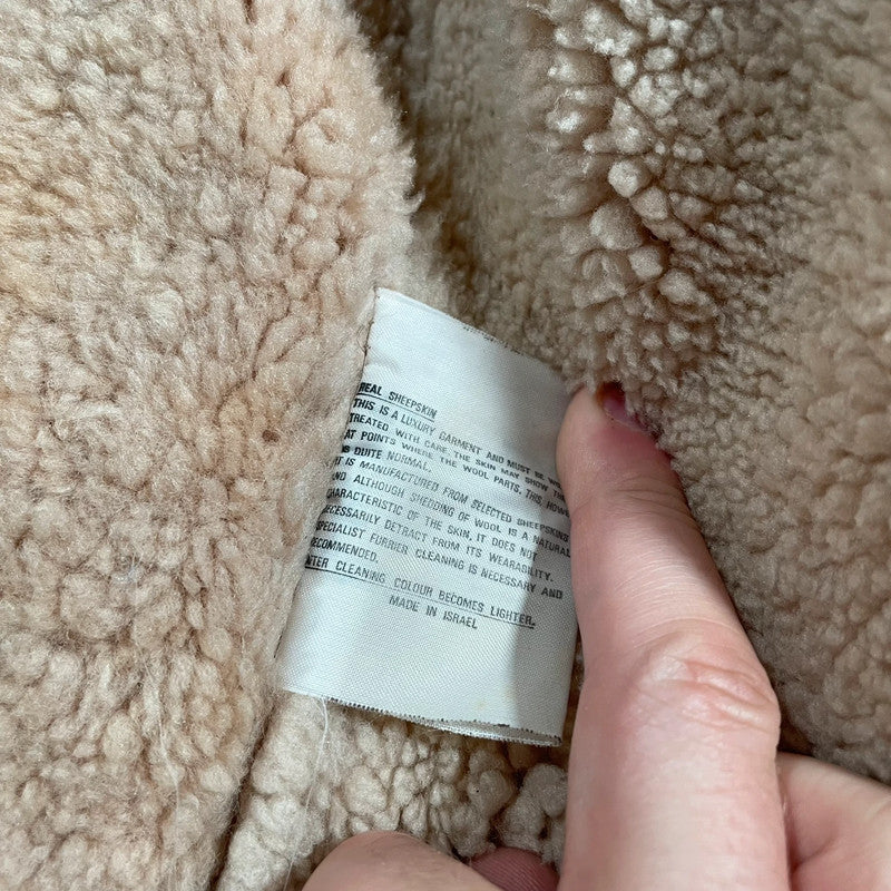 Vintage 90s Brown Sheepskin Leather Jacket Delboy - Size 16, brand: NO LABEL, condition: Very good, size: 12 / L