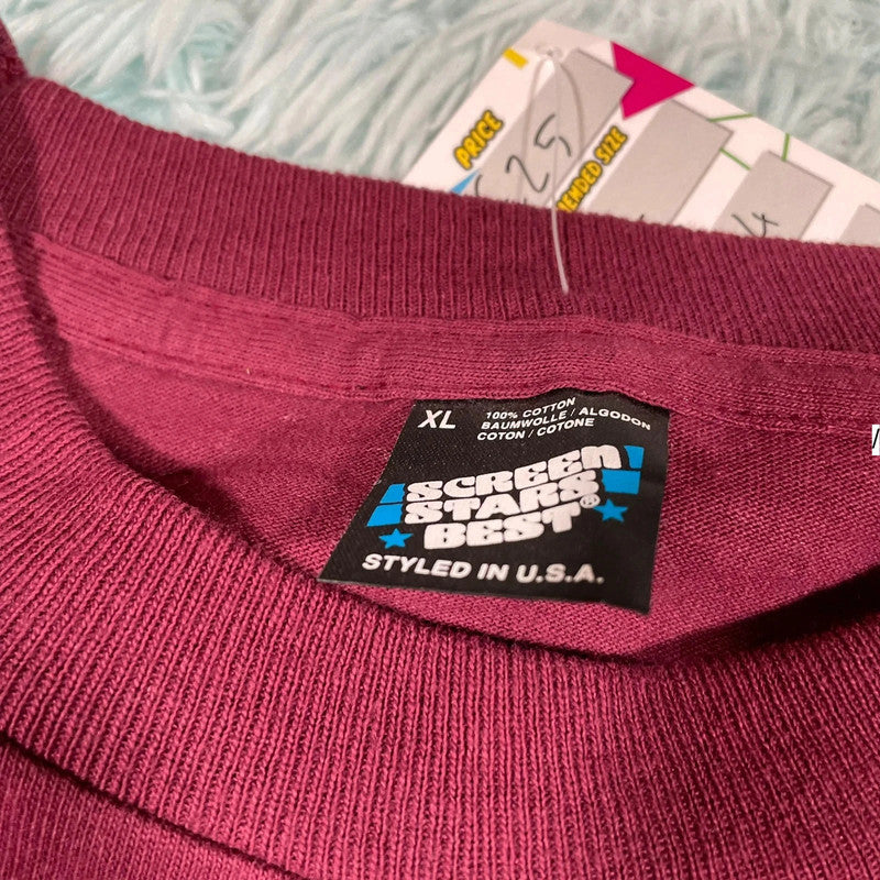 Vintage 90s Burgundy 1492 Movie Promo T Shirt Long Sleeve - XL, brand: Screen Stars, condition: New without tags, size: XL