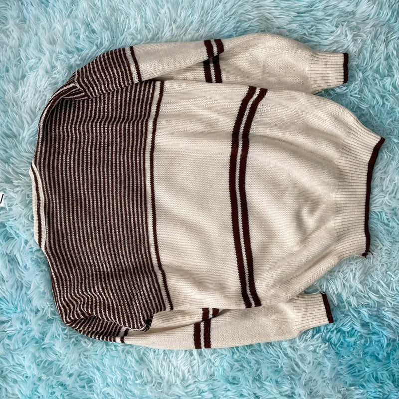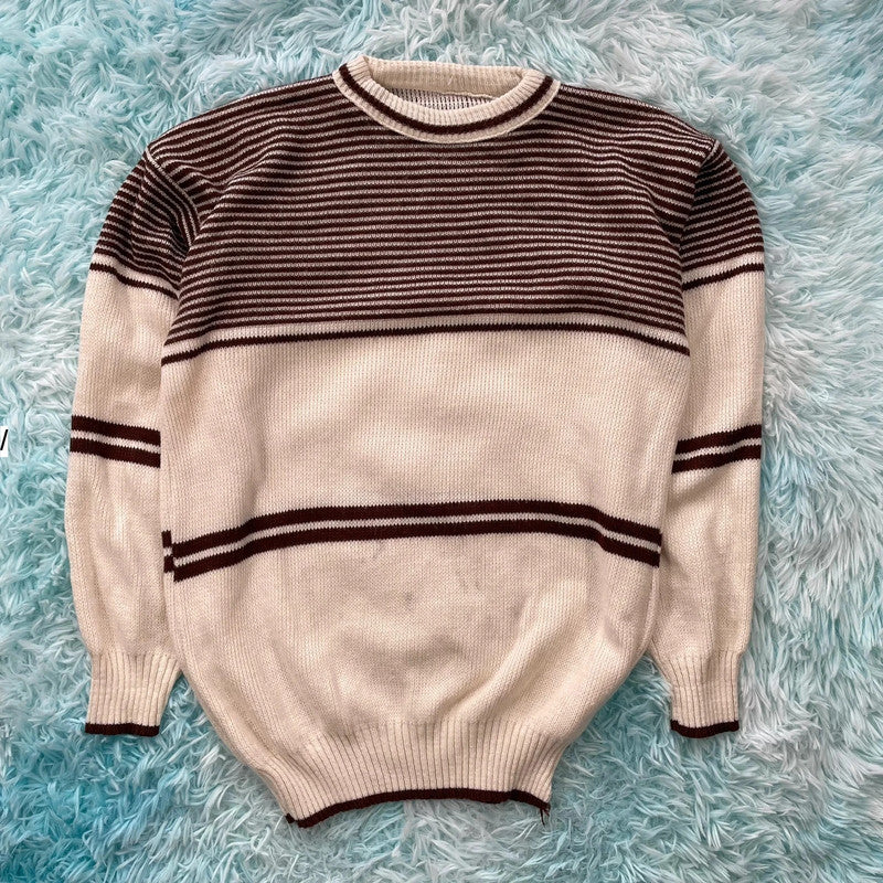 Vintage 90s Cream & Brown Chunky Knitted Jumper - Small, brand: NO LABEL, condition: Good, size: S