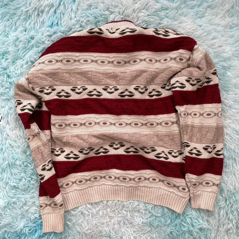 Vintage 90s Cream & Red Knitted Cardigan - Medium