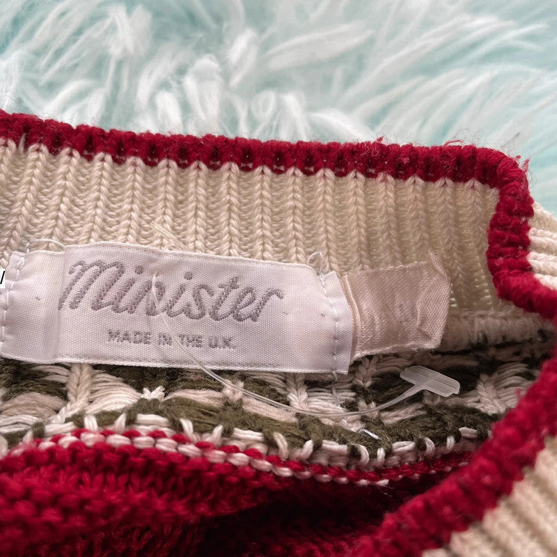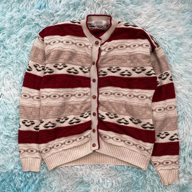 Vintage 90s Cream & Red Knitted Cardigan - Medium, brand: NO LABEL, condition: Very good, size: 6 / S