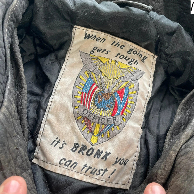 Vintage 90s Dark Brown Heavy Leather Jacket Bronx - Medium