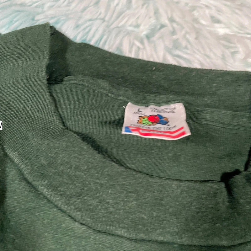 Vintage 90s Dark Green Long Sleeve Graphic T Shirt - Largw, brand: Fruit of the Loom, condition: Very good, size: L