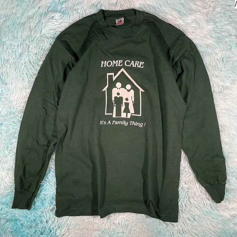 Vintage 90s Dark Green Long Sleeve Graphic T Shirt - Largw, brand: Fruit of the Loom, condition: Very good, size: L