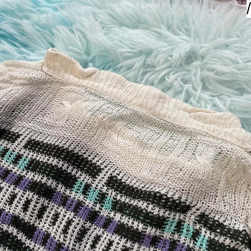 Vintage 90s Funky Patterned Knitted Jumper - Large, brand: NO LABEL, condition: Good, size: L